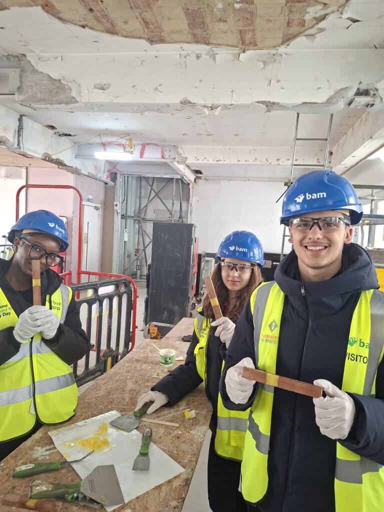 BAM Site Manager Caitlin Cronin explained: “The students gave great feedback on the workshop and were keen for other subcontractors to follow ASWS’s lead when they return in June. The hands‑on experience put design and planning into real perspective, and they were thrilled to keep their repair sample.